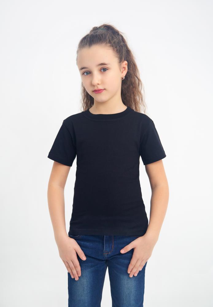 Дитяча однотонна чорна базова футболка унісекс бавовна 3-16 років , футболка хлопчику дівчинці чорного кольору в садок школу тренування зріст 98-164см