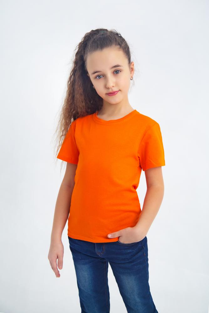 Дитяча однотонна помаранчова оранжева базова футболка унісекс бавовна 3-16 років , футболка хлопчику дівчинці помаранчового кольору в садок школу тренування зріст 98-164см Размер 36