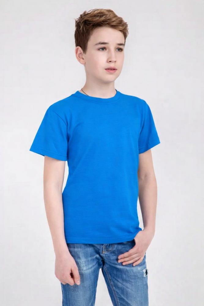 Дитяча однотонна блакитна базова футболка унісекс бавовна 3-16 років , футболка дівчинці хлопчику блакитного кольору в садок школу тренування зріст 98-164см Размер 34