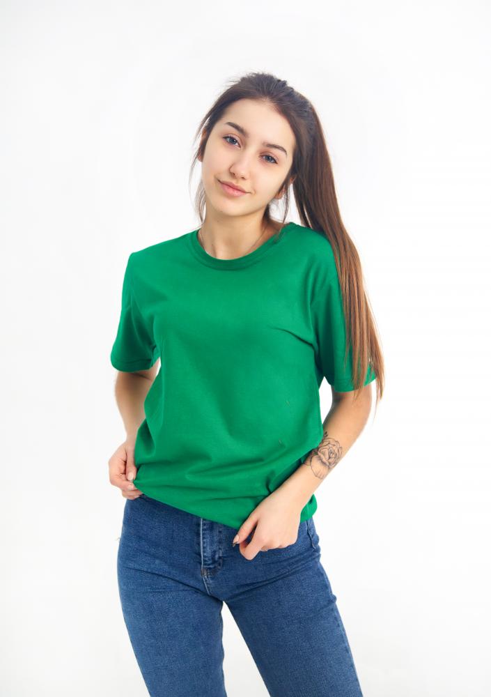Футболка однотонна доросла унісекс зелена для спорту та повсякденної носки , однотонна базова футболка зеленого кольору плотність 160 г на кв.м розміри S - 9XL Размер L