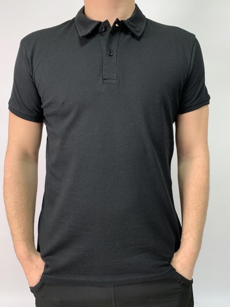 Поло Чорний однотонный базовий , літній поло чорного кольору однотонний , плотність 220 г на кв .м тканина Лакоста розміри M - 6XL Размер XL